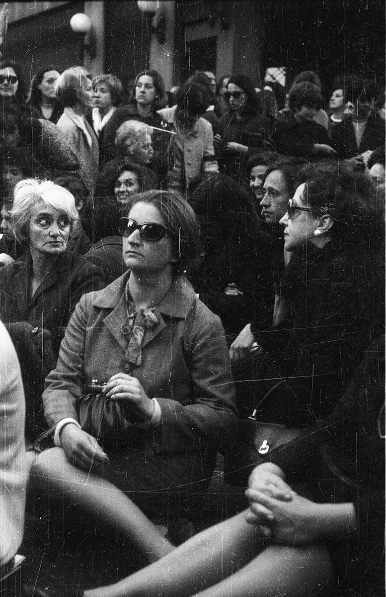 Manifesticaión de integrantes del Movimiento Femenino por la Justicia y la paz Social, en señal de duelo por los mártires estudiantiles y en reclamo del retorno de las libertades individiales. Calle Sarandí.