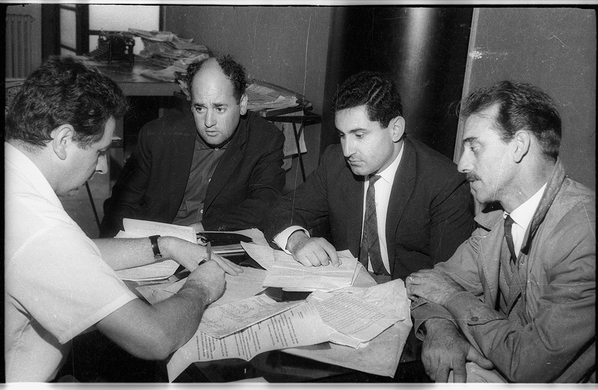 Entrevista a la delegación del Frente Intersindical del Frigorífico Nacional. Redacción de El Popular. Edificio Lapido.