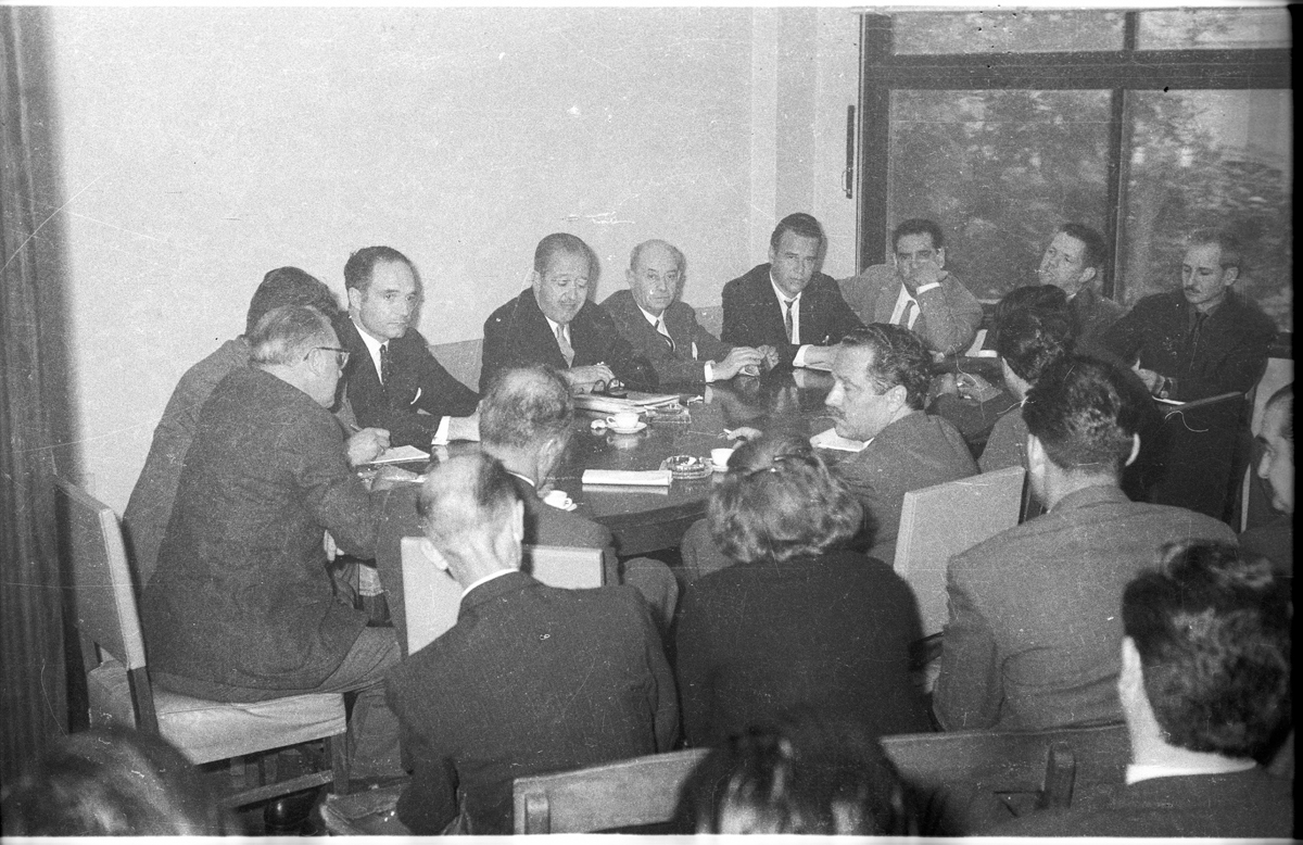 Reunión de Sanz Santamaría, Presidente del CIANP, con dirigentes obreros. S.l.