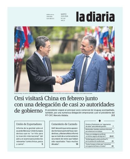 La portada de hoy (martes 20 enero 2026) de la diaria.