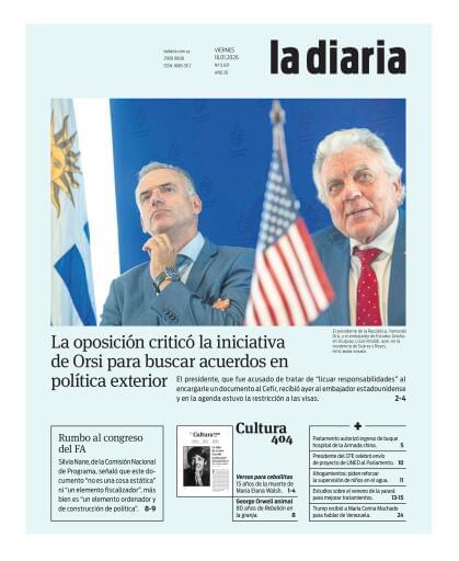La portada de hoy (viernes 16 enero 2026) de la diaria.