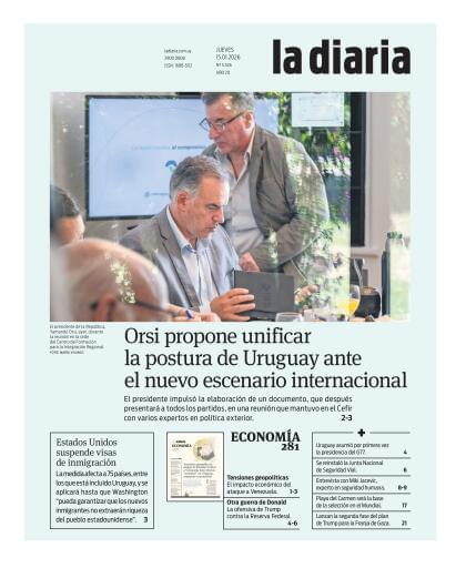 La portada de hoy (jueves 15 enero 2026) de la diaria.