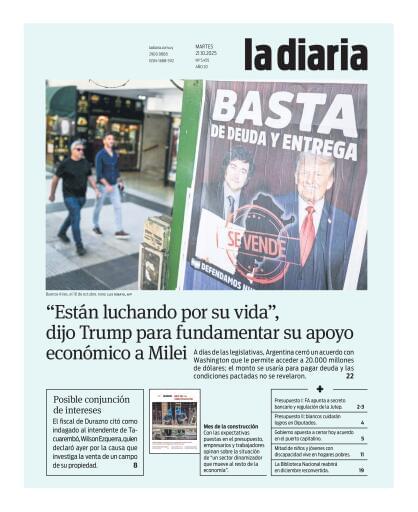 La portada de hoy (martes 21 octubre 2025) de la diaria.
