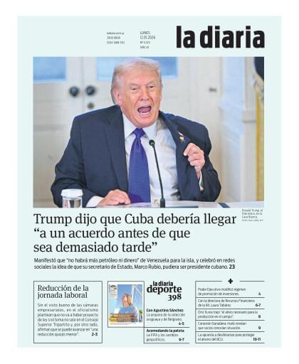 La portada de hoy (lunes 12 enero 2026) de la diaria.