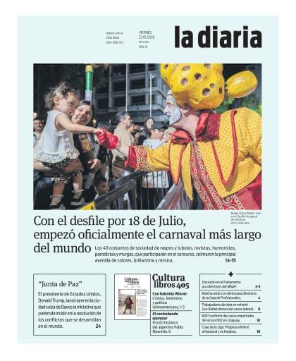 La portada de hoy (viernes 23 enero 2026) de la diaria.