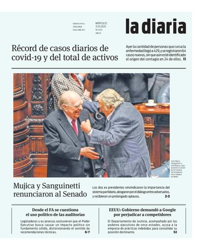 Hace 5 años (el miércoles 21 octubre 2020), la portada de la diaria fue esta: