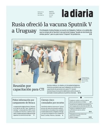 Hace 5 años (el martes 26 enero 2021), la portada de la diaria fue esta: