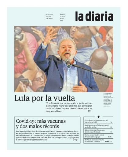 Hace 5 años (el jueves 11 marzo 2021), la portada de la diaria fue esta: